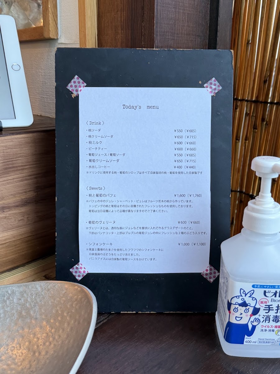 Welcome to フルーツ若木 fruitsstand & cafe, a delightful gem nestled in Fuefuki, Yamanashi, renowned for its exquisite fruit-based offerings. The star of the menu is undeniably the 桃パフェ, an extraordinary treat crafted with two luscious peaches, layered with refreshing jelly, sorbet, and pure fruit essence, all exclusive to this cafe. Priced attractively at JP¥1,600, it's a must-try for those seeking a unique dessert experience.